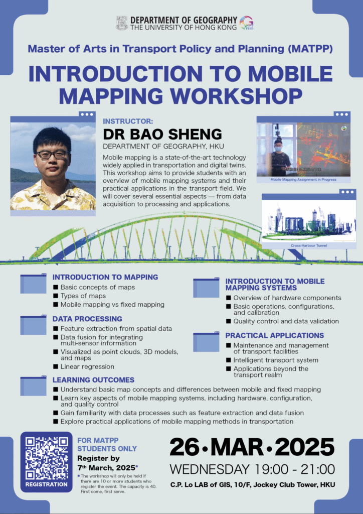 Venue: C.P. Lo LAB of GIS, Room 10.13, 10/F, Jockey Club Tower , Centennial Campus, HKU