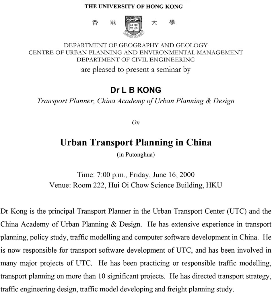 Dr L B Kong Transport Planner China Academy of Urban Planning & Design